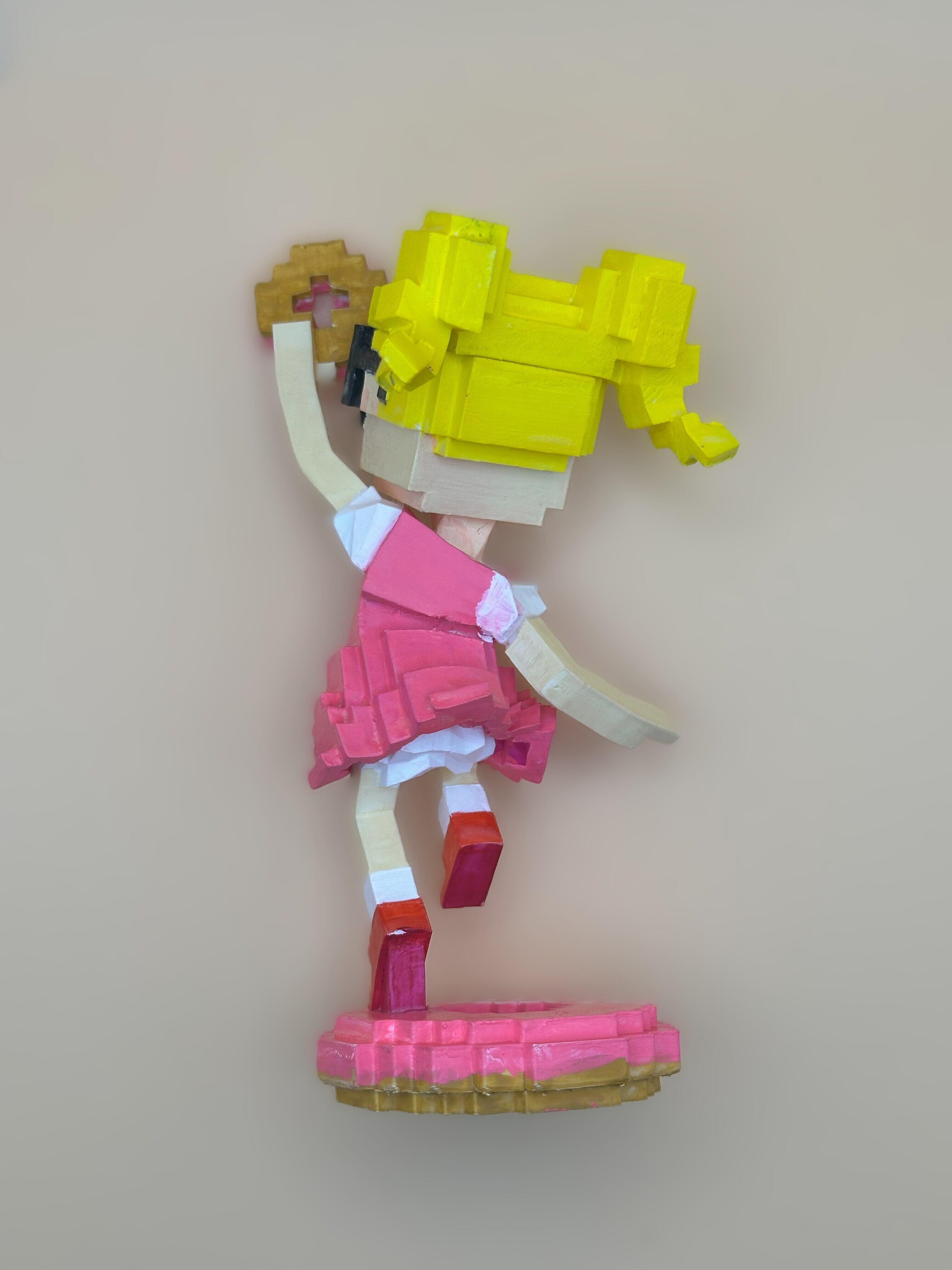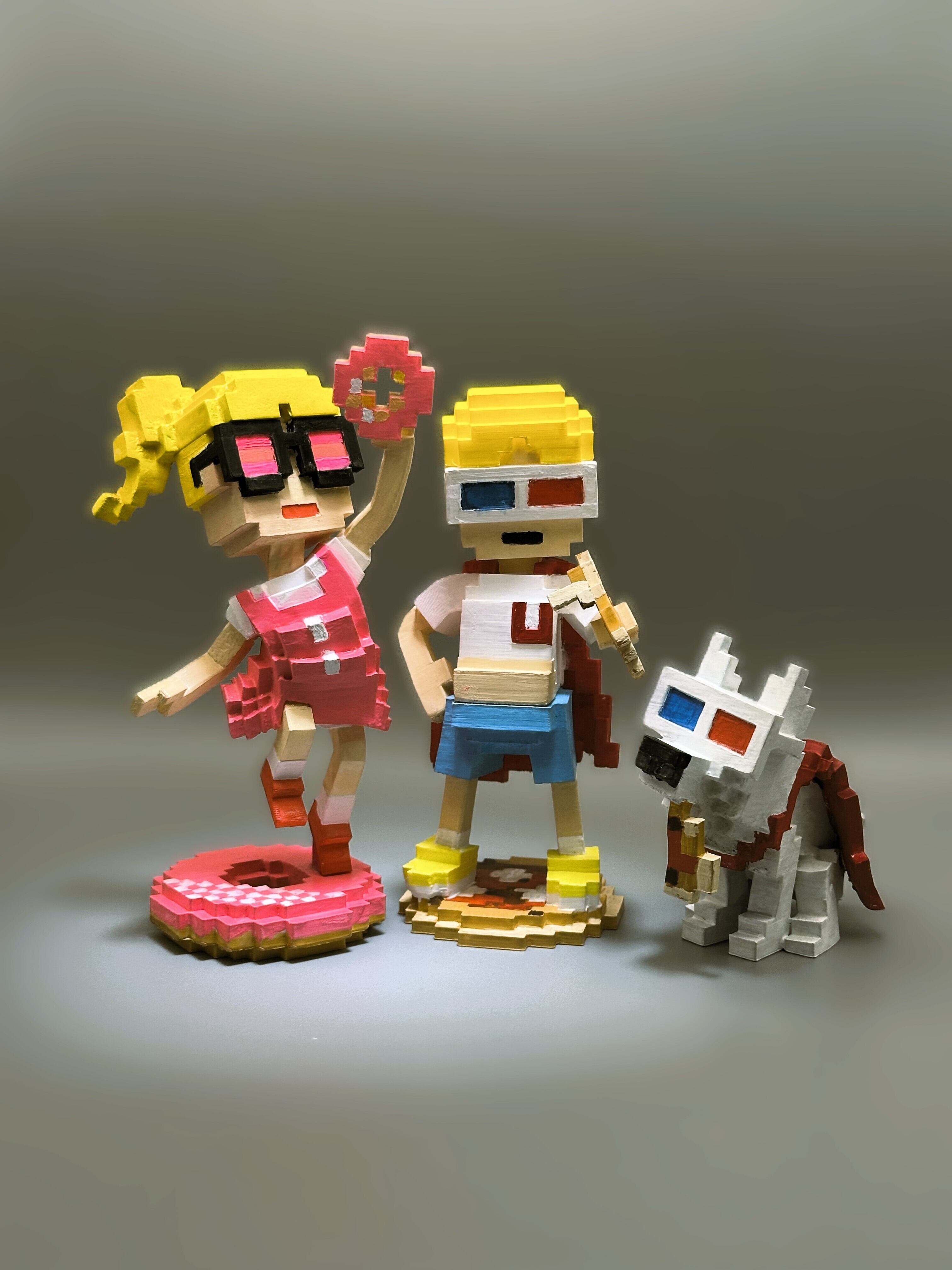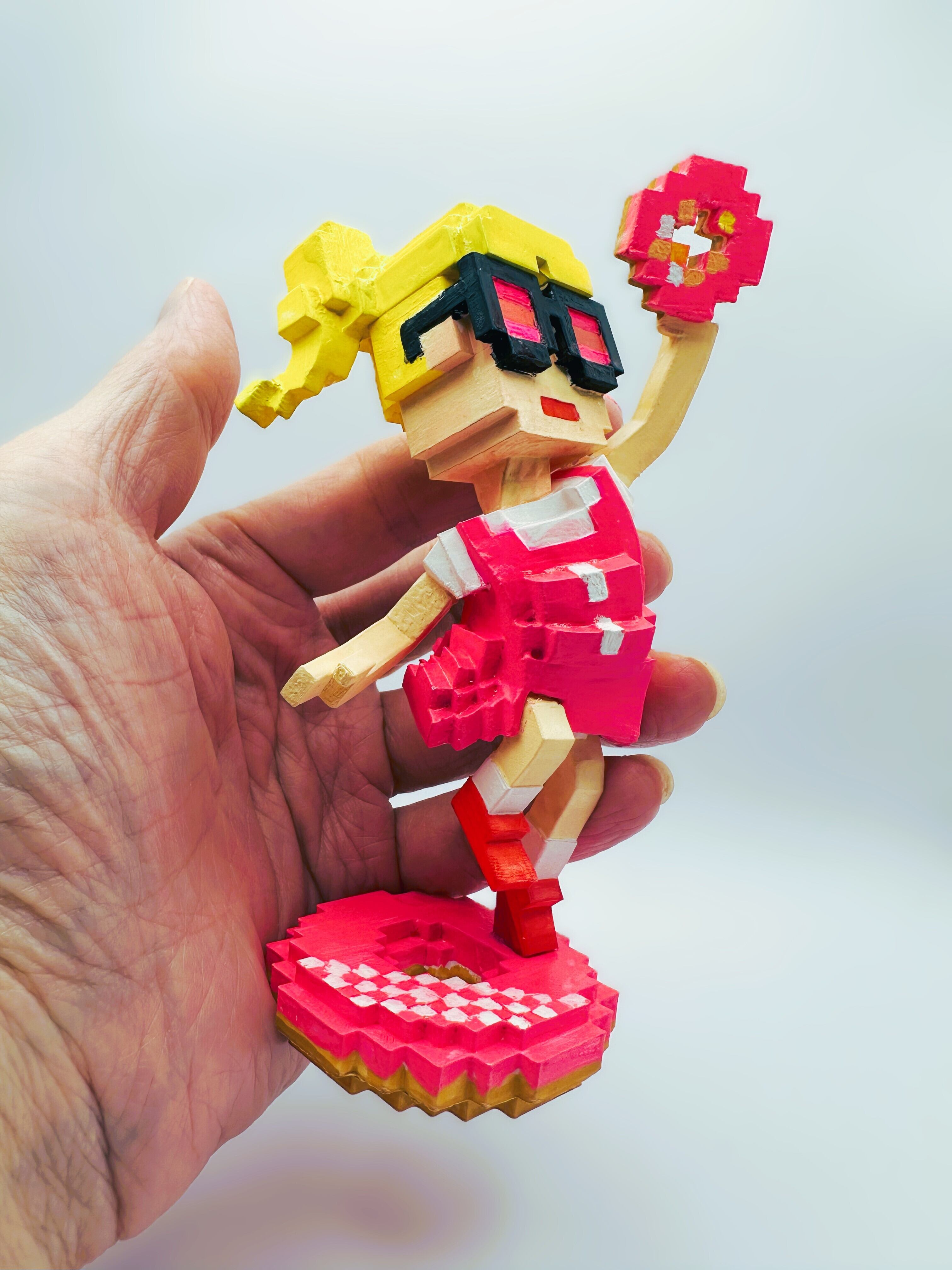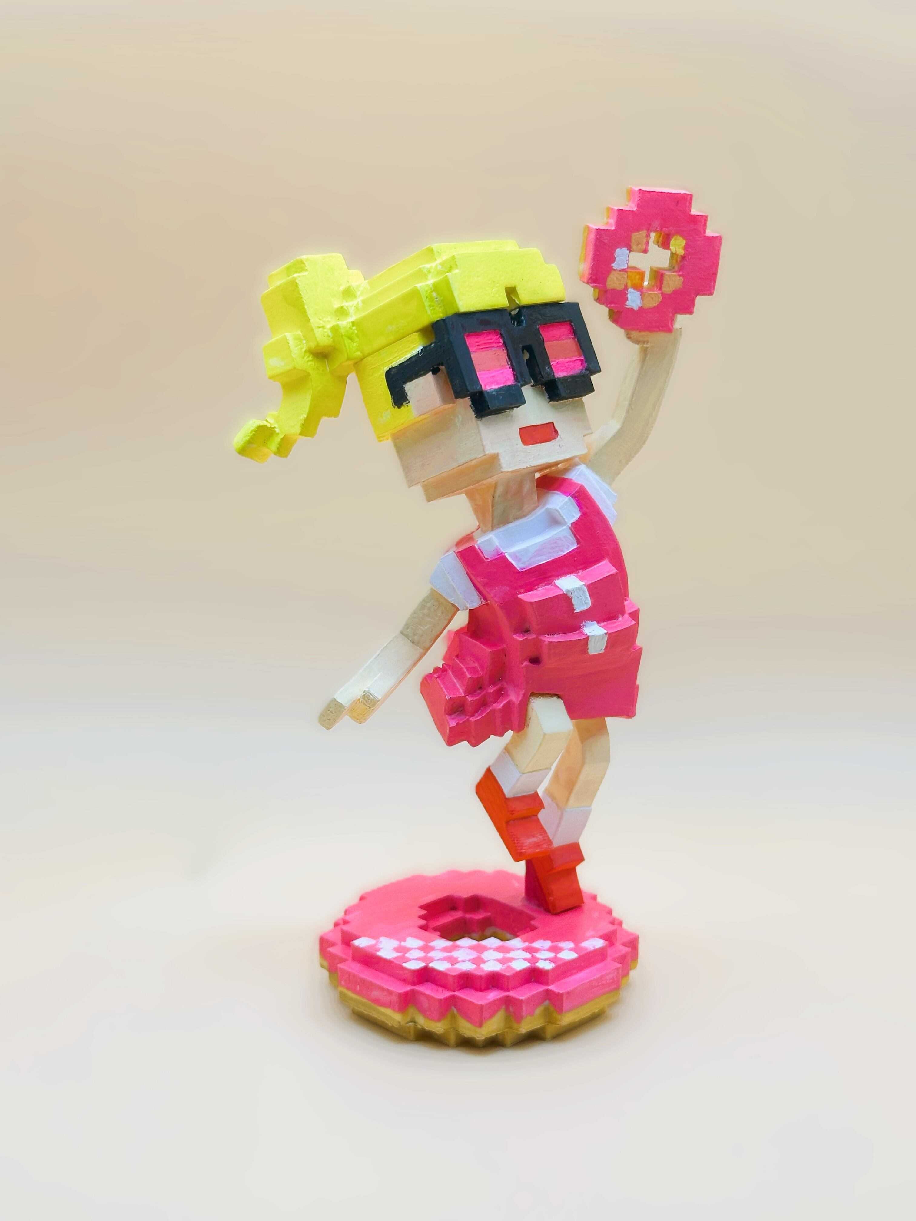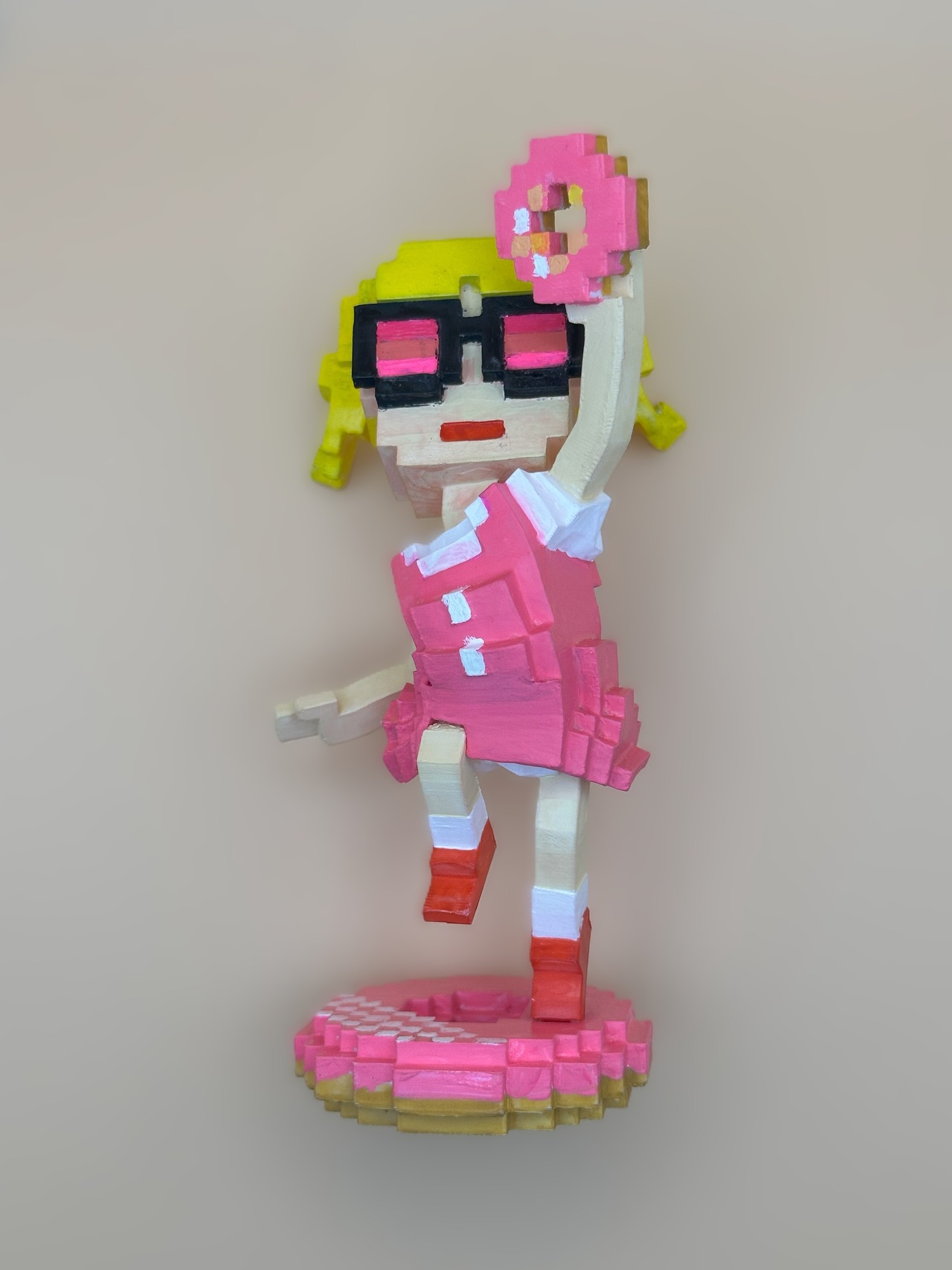 三次元のボクセルスタイルで表現されたこのフィギュアは、鮮やかな色合いと詳細なディテールが魅力です。
